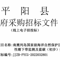 南麂列島國家級(jí)海洋自然保護(hù)區(qū)生物多樣性潮下帶監(jiān)測及藍(lán)碳(初步)數(shù)字平臺(tái)的公開招標(biāo)